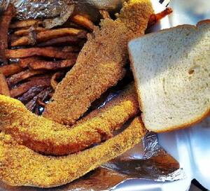 $3.00 chicken strip basket with fries $9.00 grilled catfish basket with salad. 11613 s western ave, oklahoma city ok 73170. Served with seasoned fries & choice of ranch or blue cheese dressing.